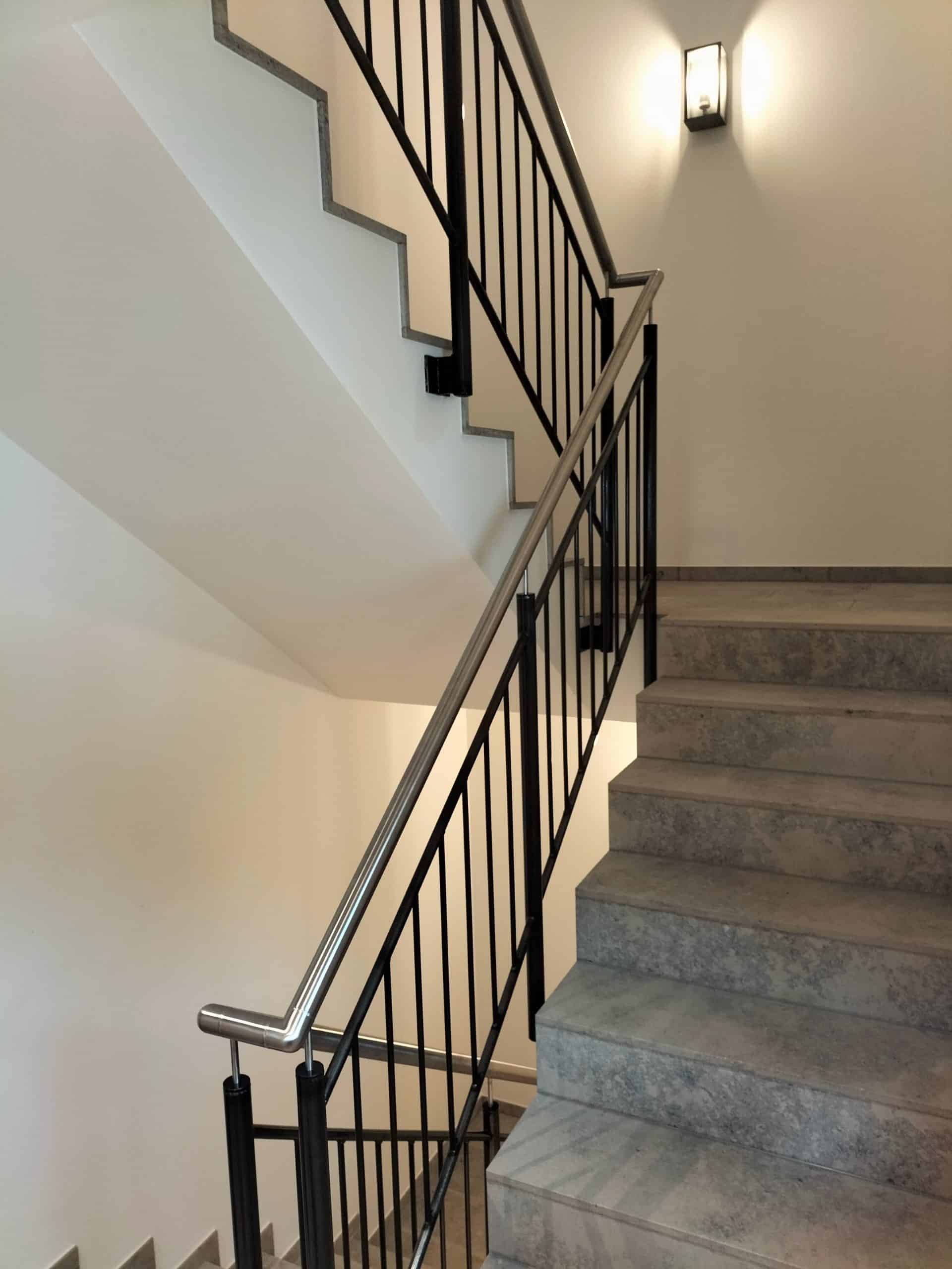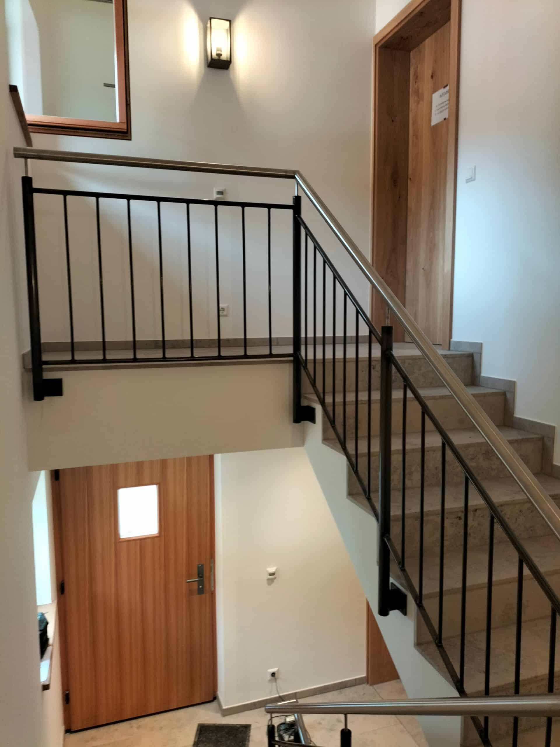 Formschöne Treppe mit Metallgeländer im Chiemgau.