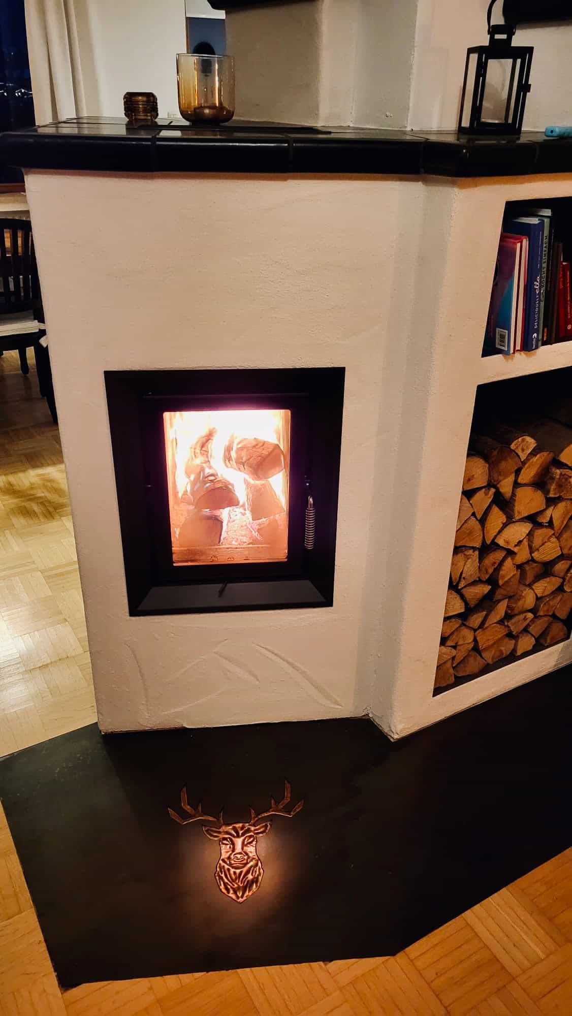Ein Highlight für den Kachelofen: Metallboden mit Akzentuierung.